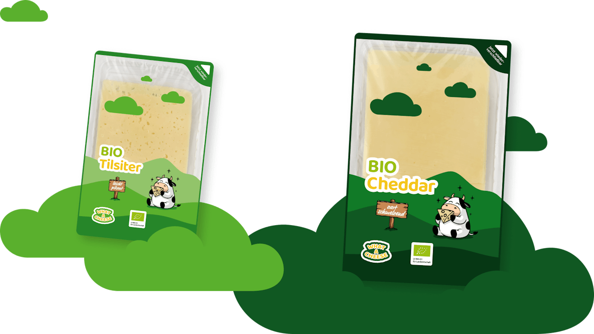 What a Cheese ist eine Eigenmarke der Vallée Verte, einem der führenden Bio-Käseimporteure Deutschlands. Um neue Zielgruppen im Preiseinstiegssegment zu erschließen, wurde die Marke als Ergänzung zum bestehenden Premiumsortiment entwickelt. Das Sortiment umfasst milde Scheibenkäse – hergestellt in Lettland und ideal für junge Erwachsene und Familien, die Wert auf Bio-Qualität, unkomplizierten Genuss und alltagstaugliche Produkte legen.